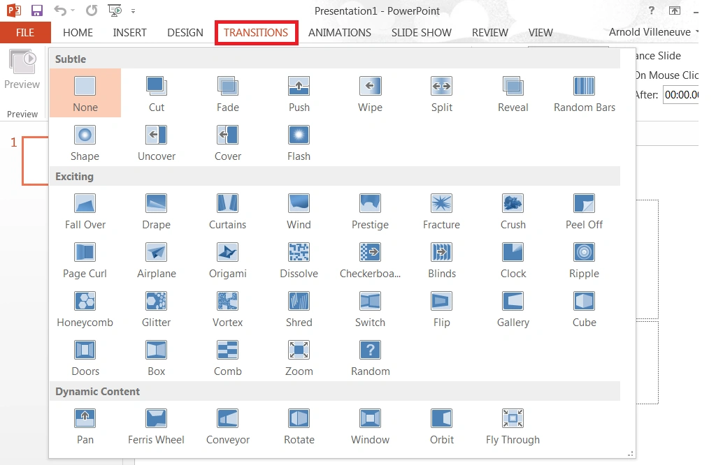 This can be achieved by incorporating a number of elements within a slide or even in how you transition from one slide to the next. Both of these are types of animation. Let's start with slide transition.