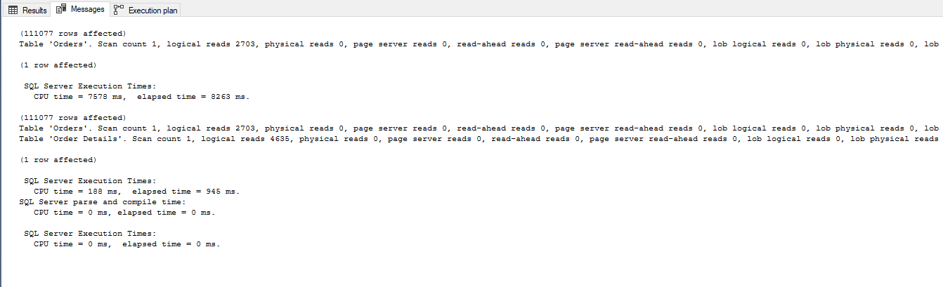 SET STATISTICS TIME ON
